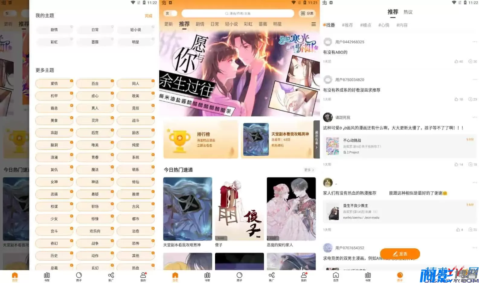 一款看漫画的软件,这里拥有全网的漫画资源,国内外漫画都有,免费观看,种类齐全,不管你是喜欢热血漫画还是爱情漫画,都可以找到自己喜欢的菜,还有众多原创漫画,值得你去看,赶紧下载看看吧。