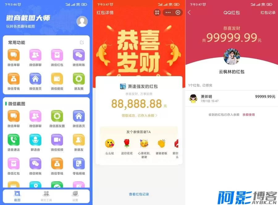 可以伪造微信、QQ、支付宝等常用软件聊天记录和收款、转账、红包记录、朋友圈等等