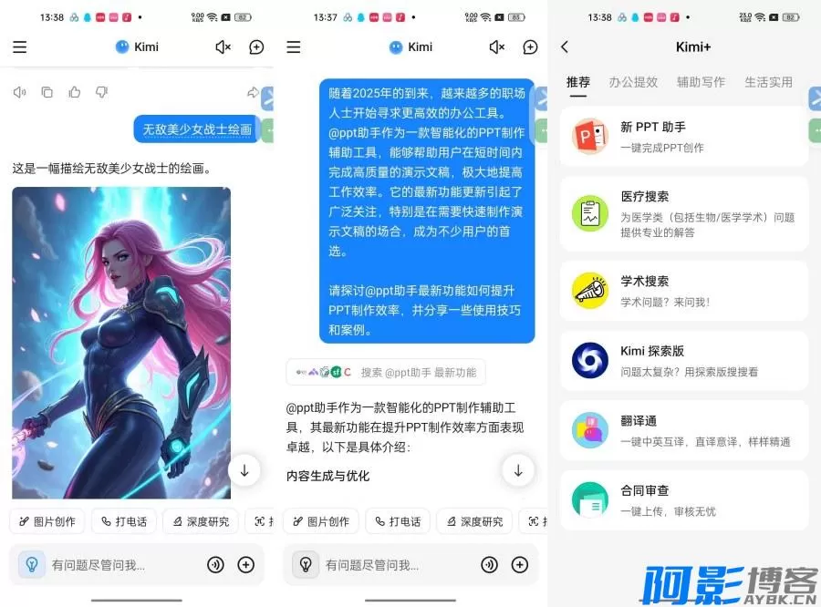 【资 源 介 绍】Kimi支持200万汉字输入,能处理多种文件格式,具备智能搜索、高效阅读等功能,可用于学术翻译、法律分析等场景,还有每日20次AI智能绘图
