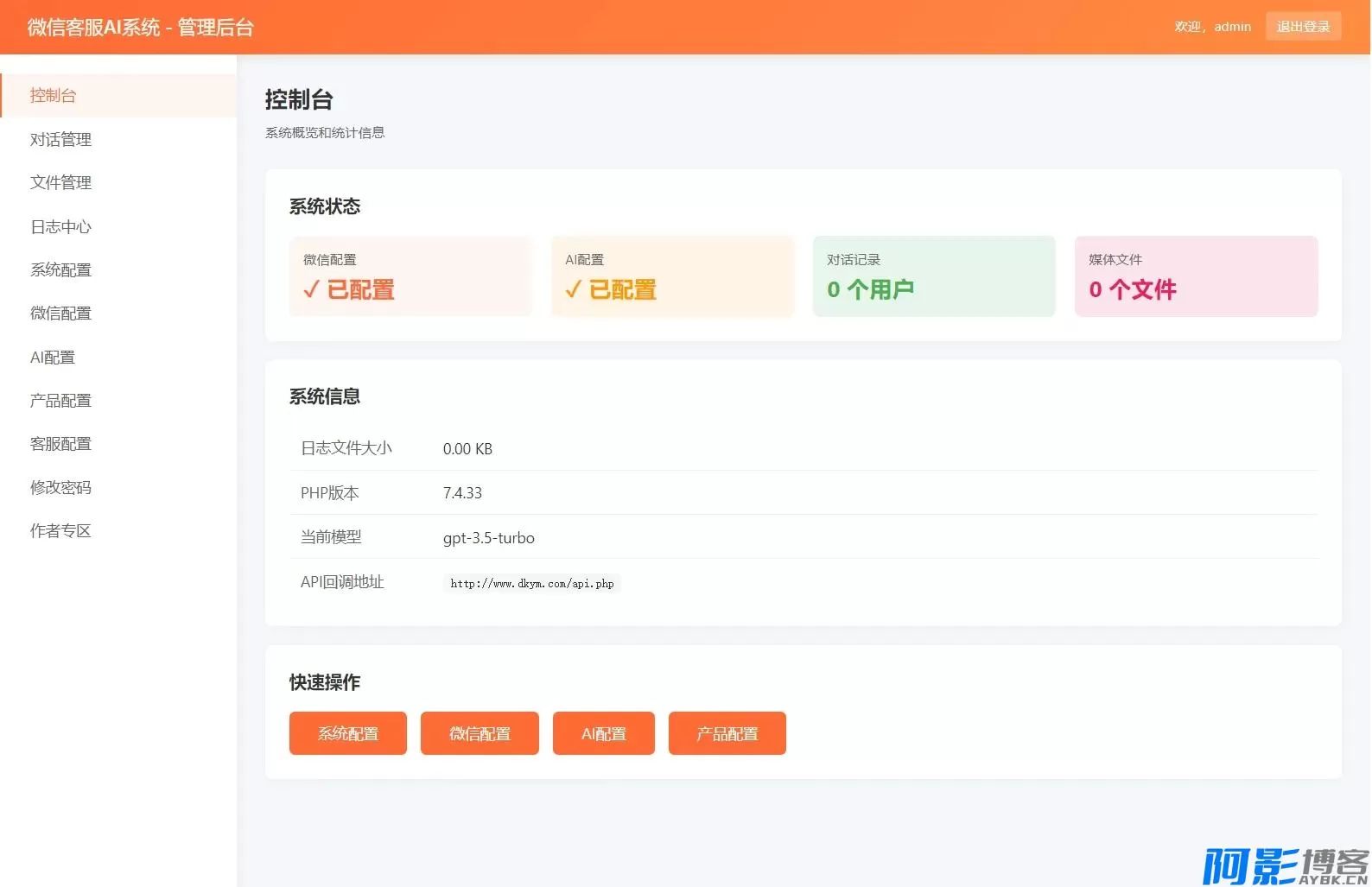 – ** 控制台 **:实时查看系统状态、配置状态、对话数量等