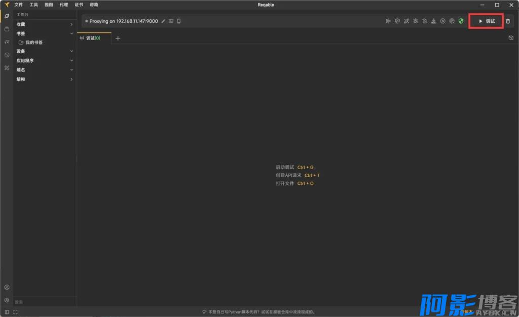 先抓取自己是群主或管理员的群,如图打开Reqable,通过右上角的调试按钮以开启网络请求抓取