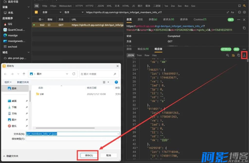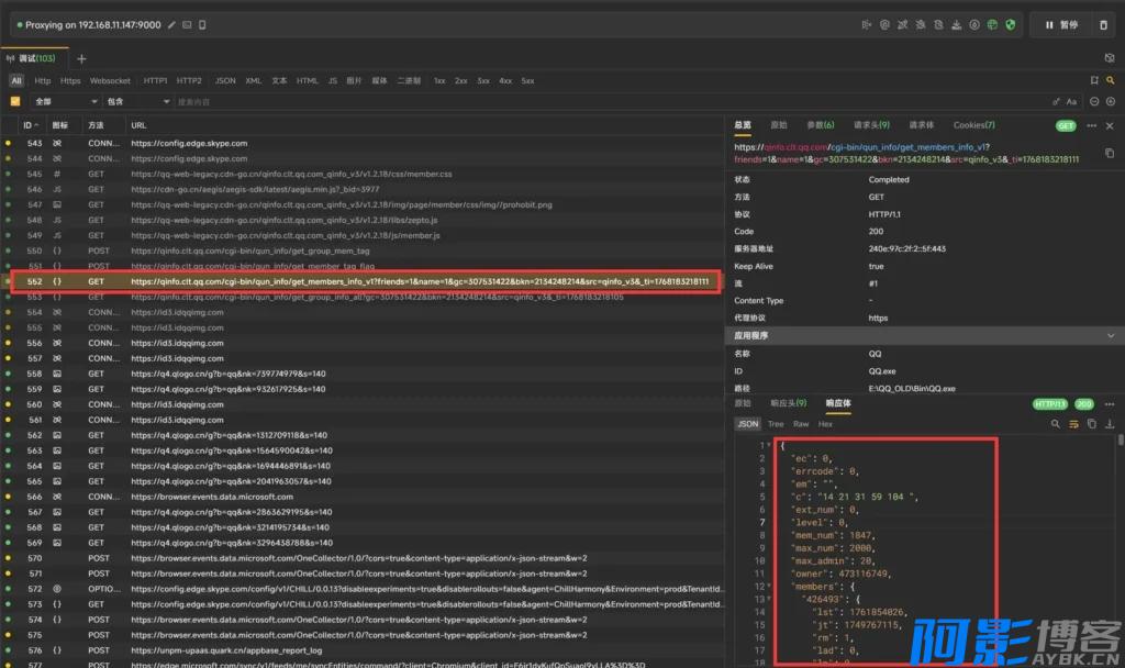 步骤3:使用Reqable先抓取自己Q群成员JSON信息