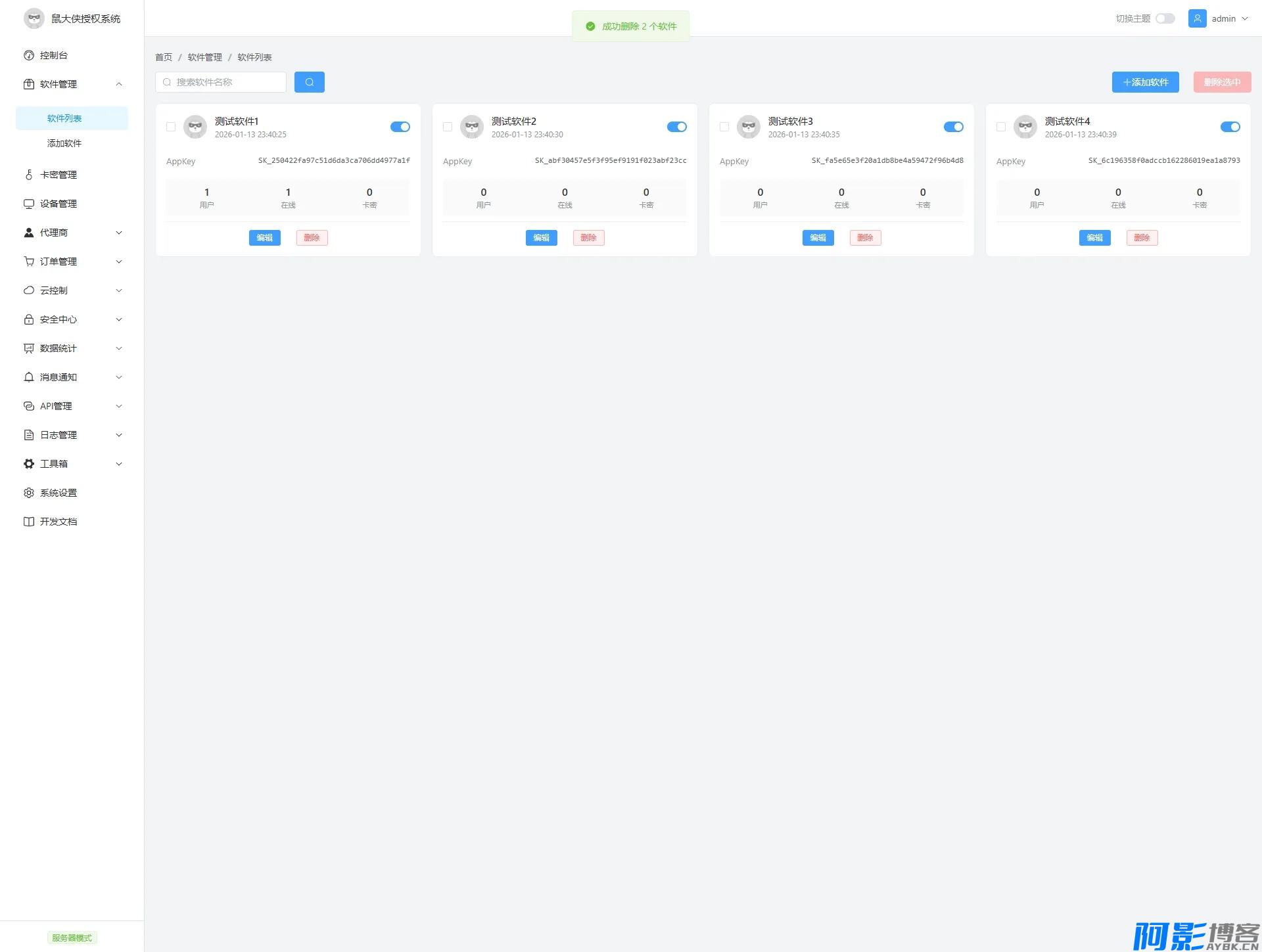 一款专业的软件授权管理系统,支持多软件管理、卡密授权、设备绑定、在线监控等功能。