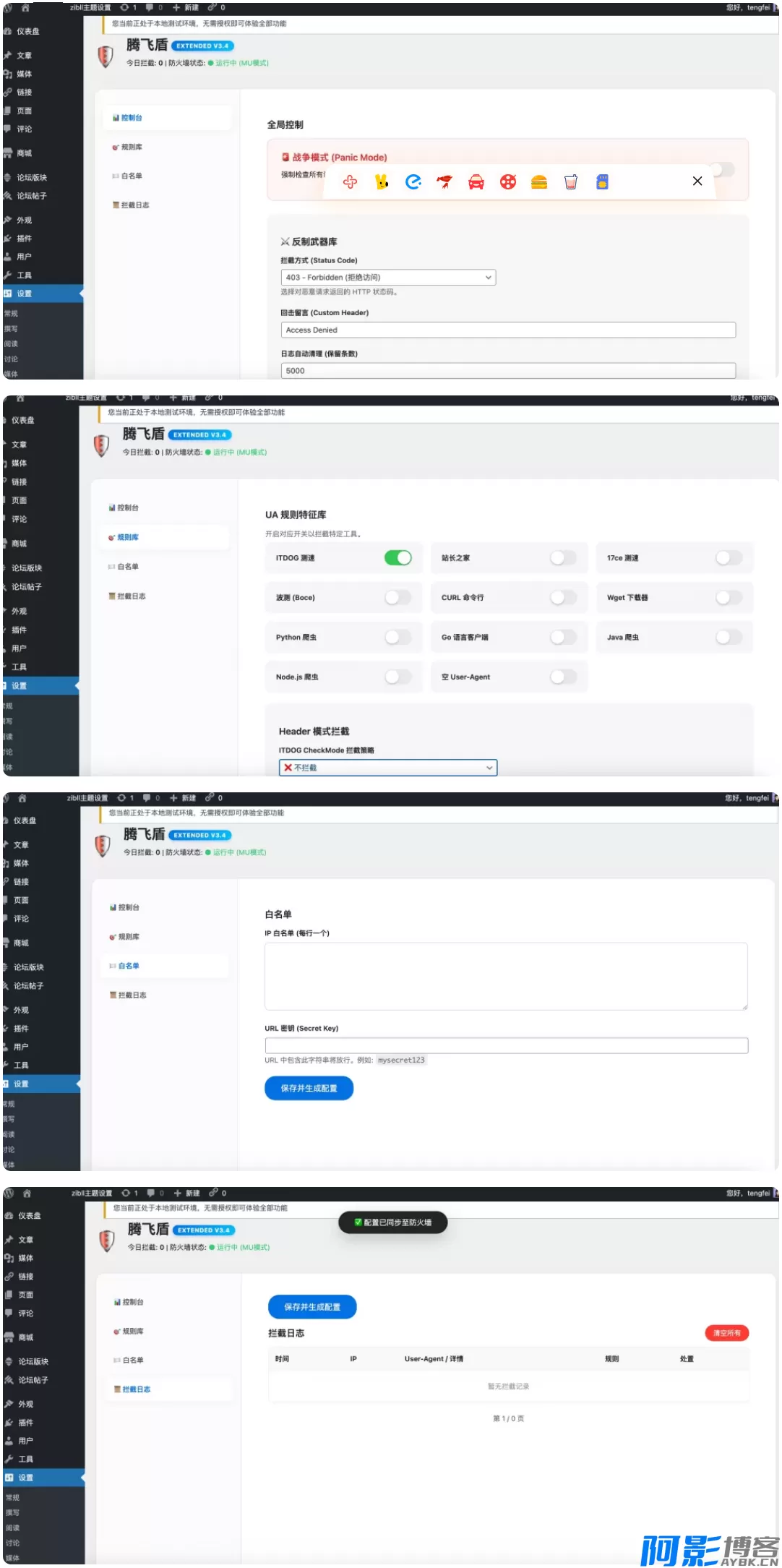 这是一款可以屏蔽测速网站的安全插件,可以去屏蔽测速网站的一款插件,这款插件还是比较不错的,因为有很多人喜欢测自己的网站速度,这款插件就可以把他们给屏蔽,喜欢的自行部署吧!