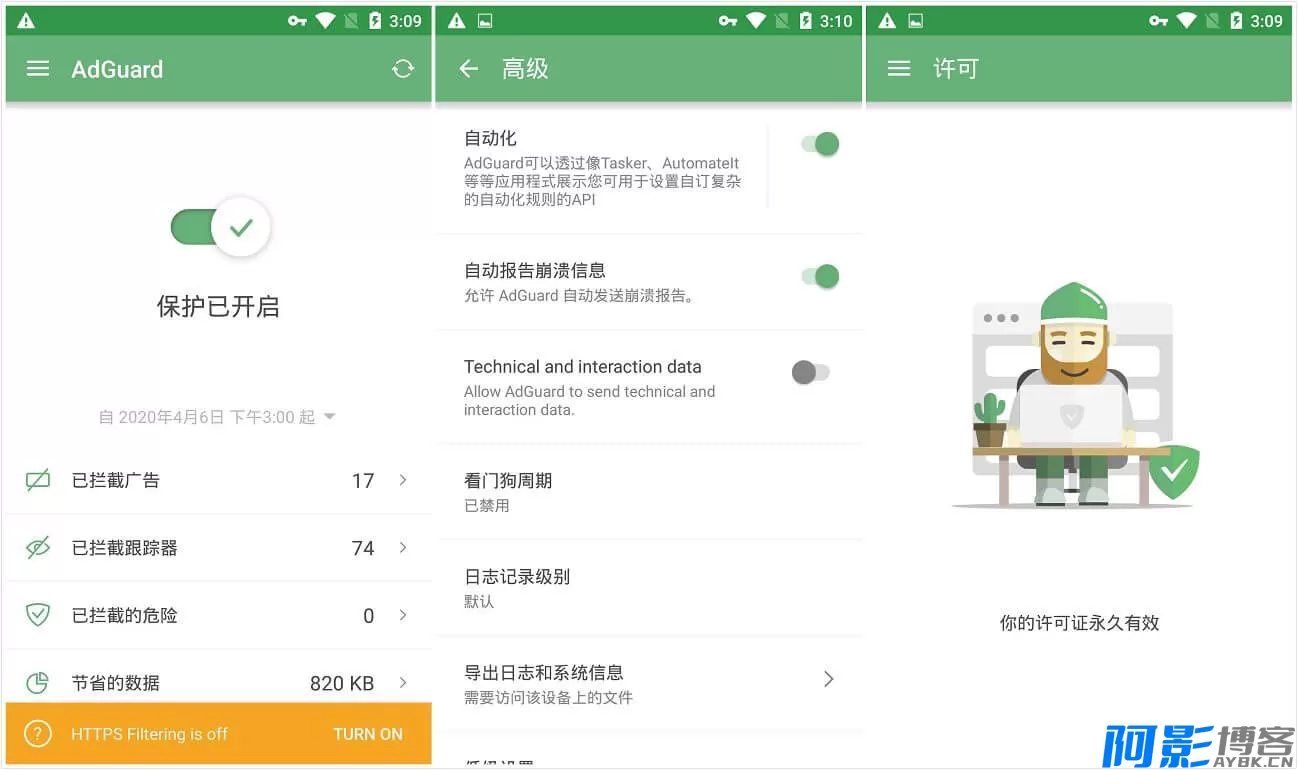 AdGuard,最受欢迎的广告拦截程序,堪称去广告大杀器。Adguard安卓版无需ROOT权限,可拦截所有应用和浏览器的广告。具有广告内容拦截跟踪器(包括:广告拦截过滤器、社交过滤器、隐私过滤器、安全过滤器、自定义过滤器)、DNS过滤、HTTPS过滤、节省应用流量数据管理及隐身模式保护个人隐私功能。