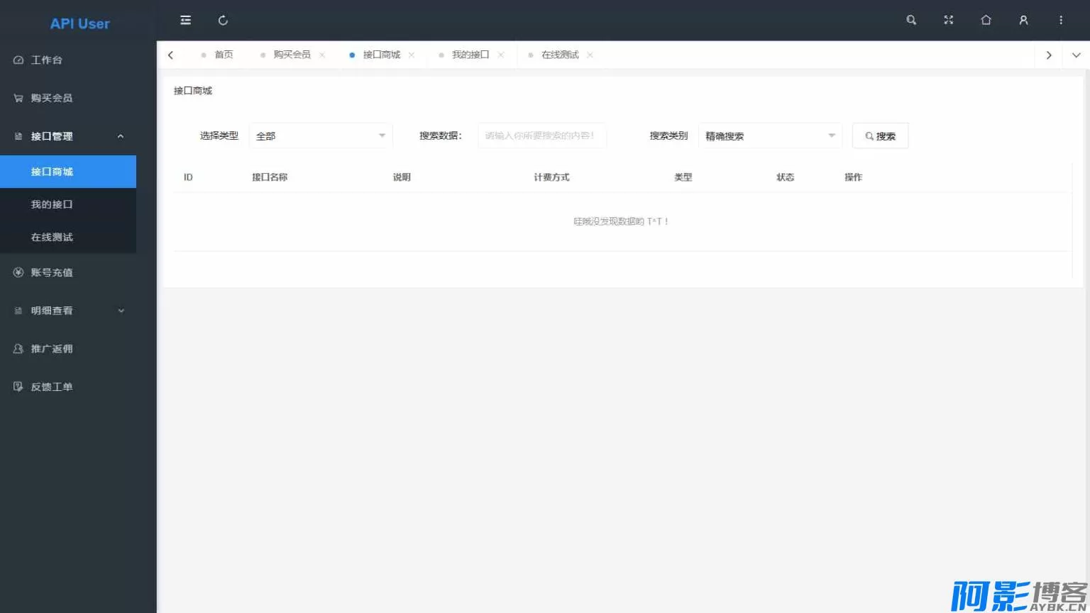 基于 PHP+Mysql 进行开发的,拥有多接口管理功能,支持不同的计费方式包括包月、按次、会员专享。用户可以全自动注册使用,系统支持在线调试和日志记录。现有API接口只需要几行代码就可以接入本系统,实现不同的计费方式。