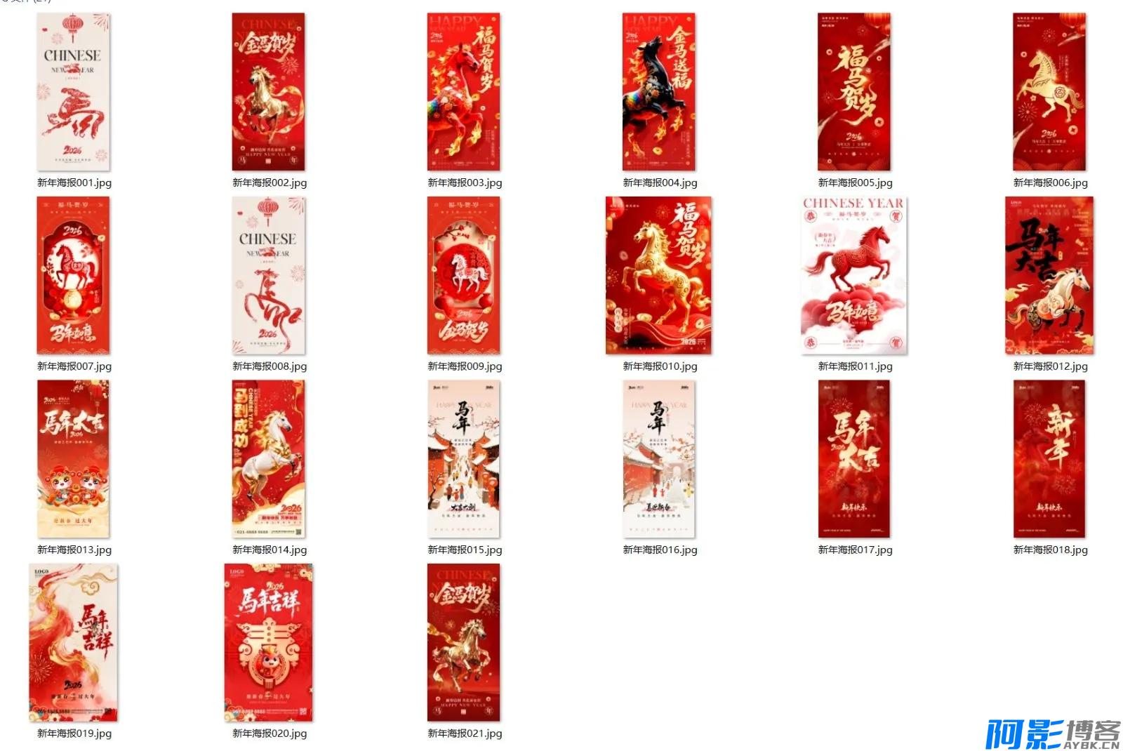 21款2026马年元旦新年中国风喜庆春节宣传海报设计PSD模板,文件大小2.9GB