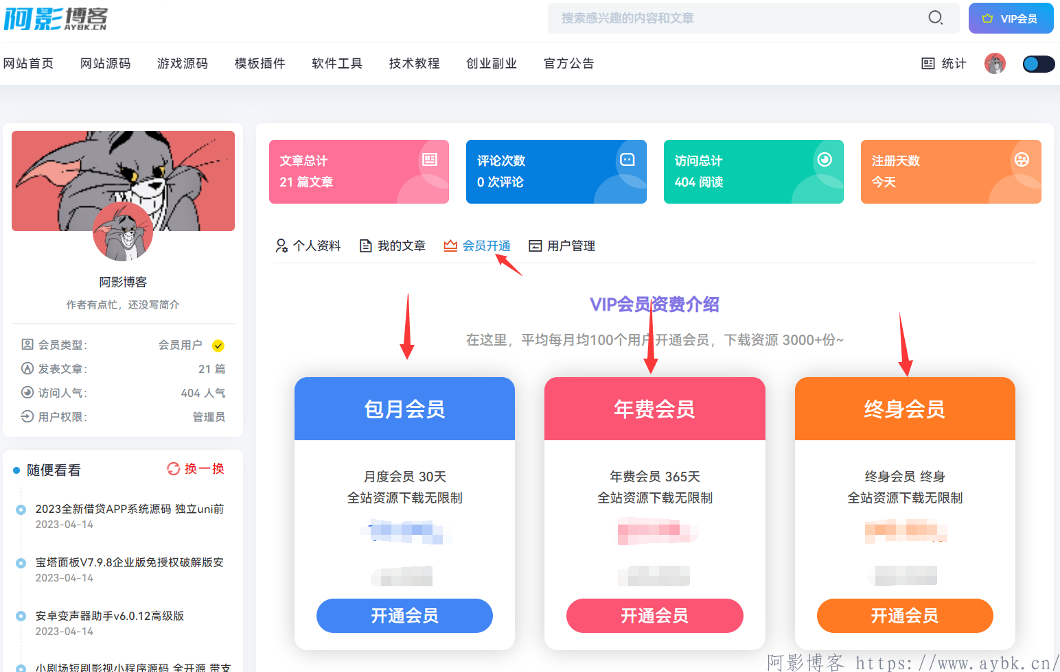 第三步:注册账号后登入,请点击用户中心,点击用户中心里面的“会员开通”